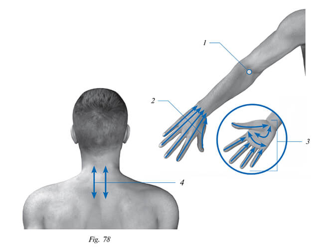 | 4 | Along the cervical and thoracic departments of the spine (C5-Th1), paravertebral, scanning | VARIABLE | 2 min on each side |